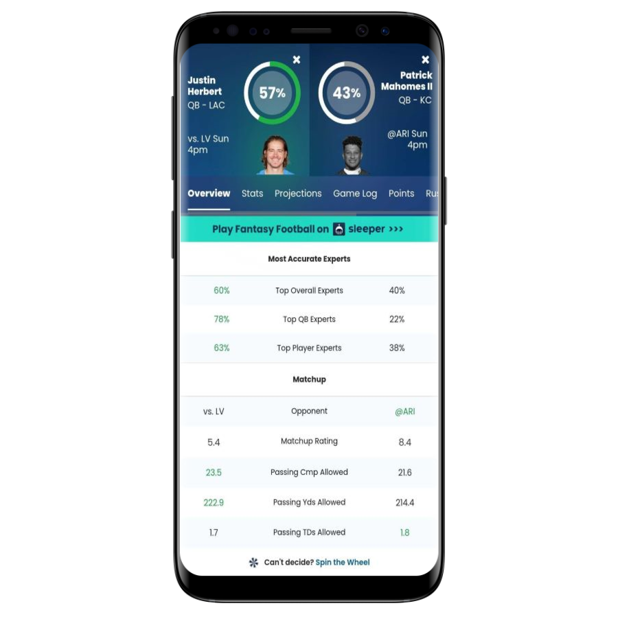 Who Should I Start? has been updated to be more clear and intuitive to aid you in making your start/sit decisions. See detailed breakdowns on how the experts have voted, and access detailed analysis to help you decide who to start.
