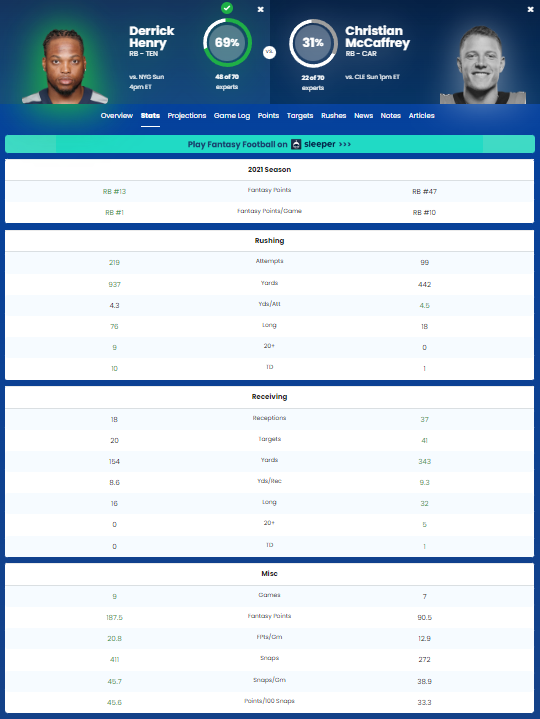 Explore details for that week's matchup, how players are performing on the season, projections for the games, and more. Each comparison will display a "winner" for that category for you to get a quick summary on their stat lines.