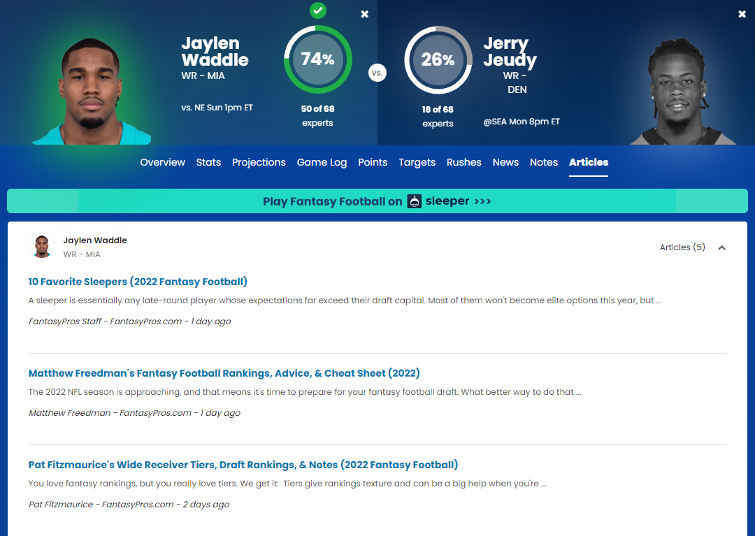 And, get quick access to the latest news, notes, and articles to stay informed on the most up-to-date information and its fantasy impact for each player.