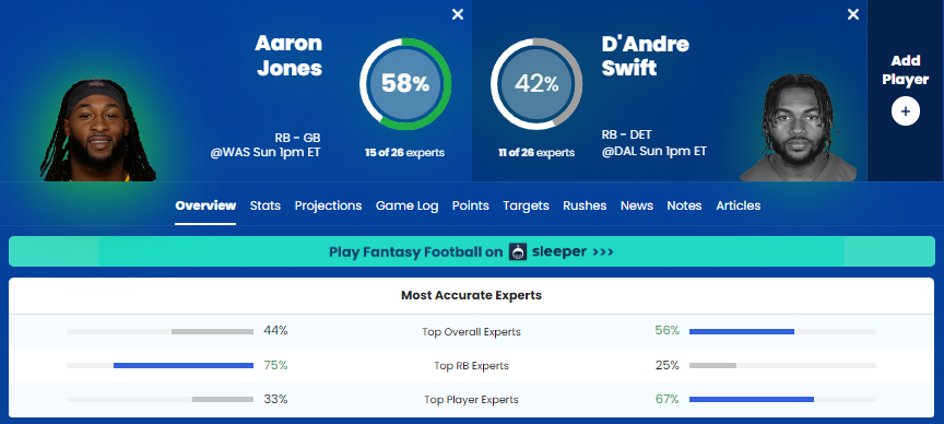After choosing which players to compare, see a snapshot of who all the experts vote for, as well as by historically accurate groups P.