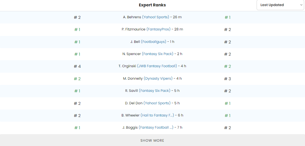 Further down, see a detailed list of experts and how they've ranked the players and feel confident that you're making your start/sit decisions with the most up-to-date information possible.