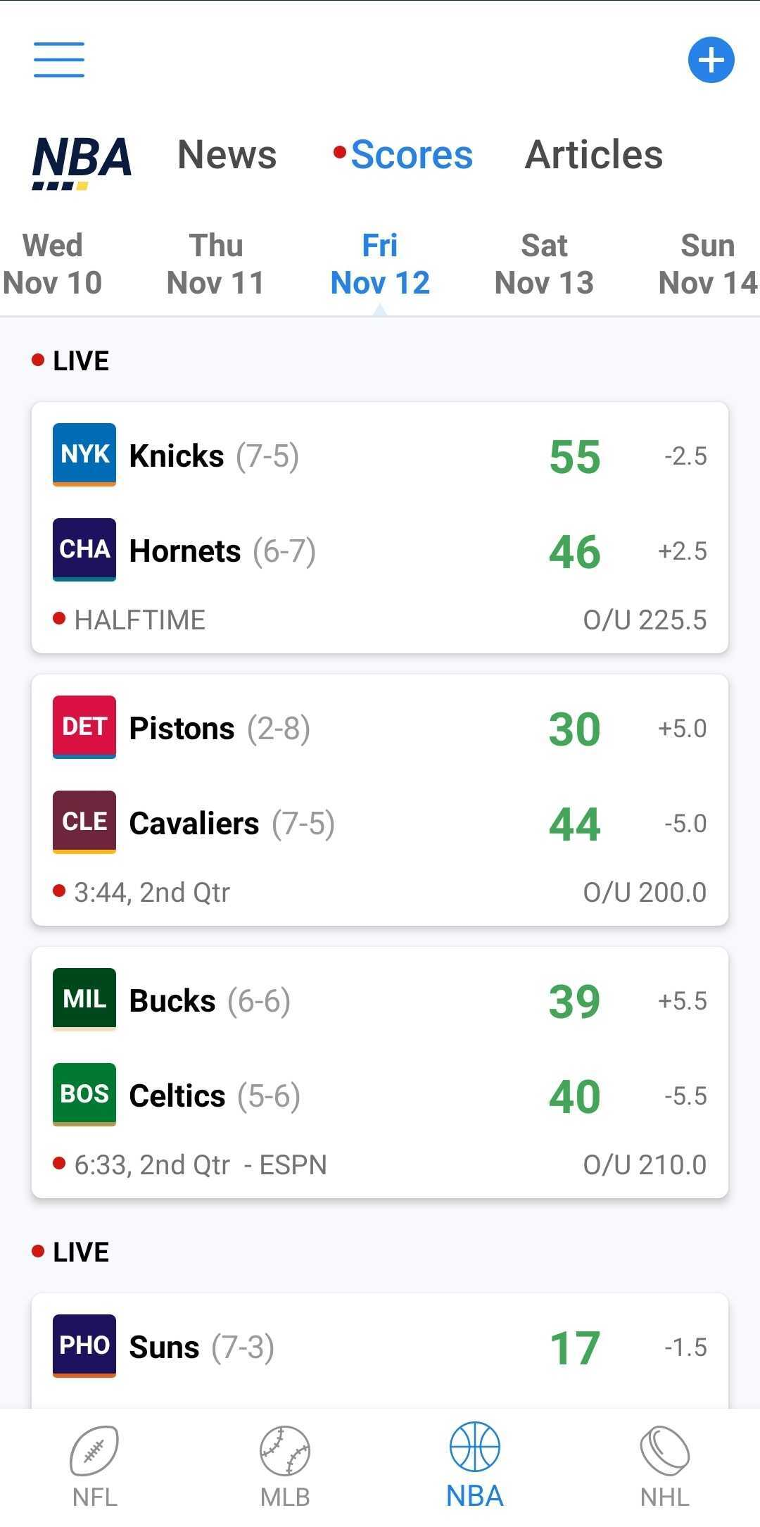 You will also now find live game information across all sports. View live scoring, player and team stats, and betting information in the Scores tab.