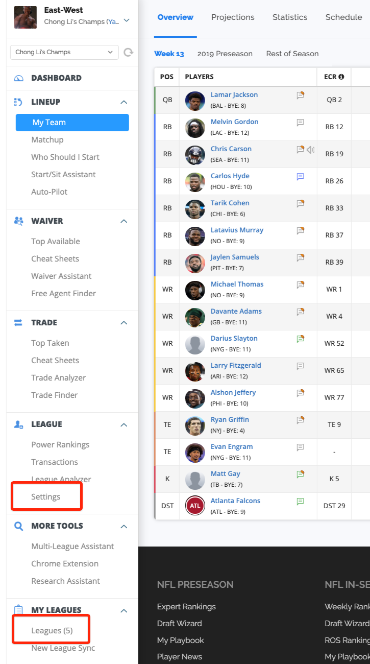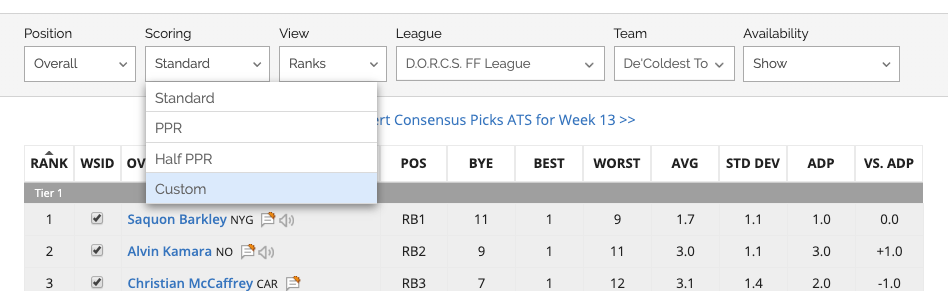 Until now, the rankings you've been using are the closest to your league's settings, using the default setup for Standard, .5 PPR, or PPR.