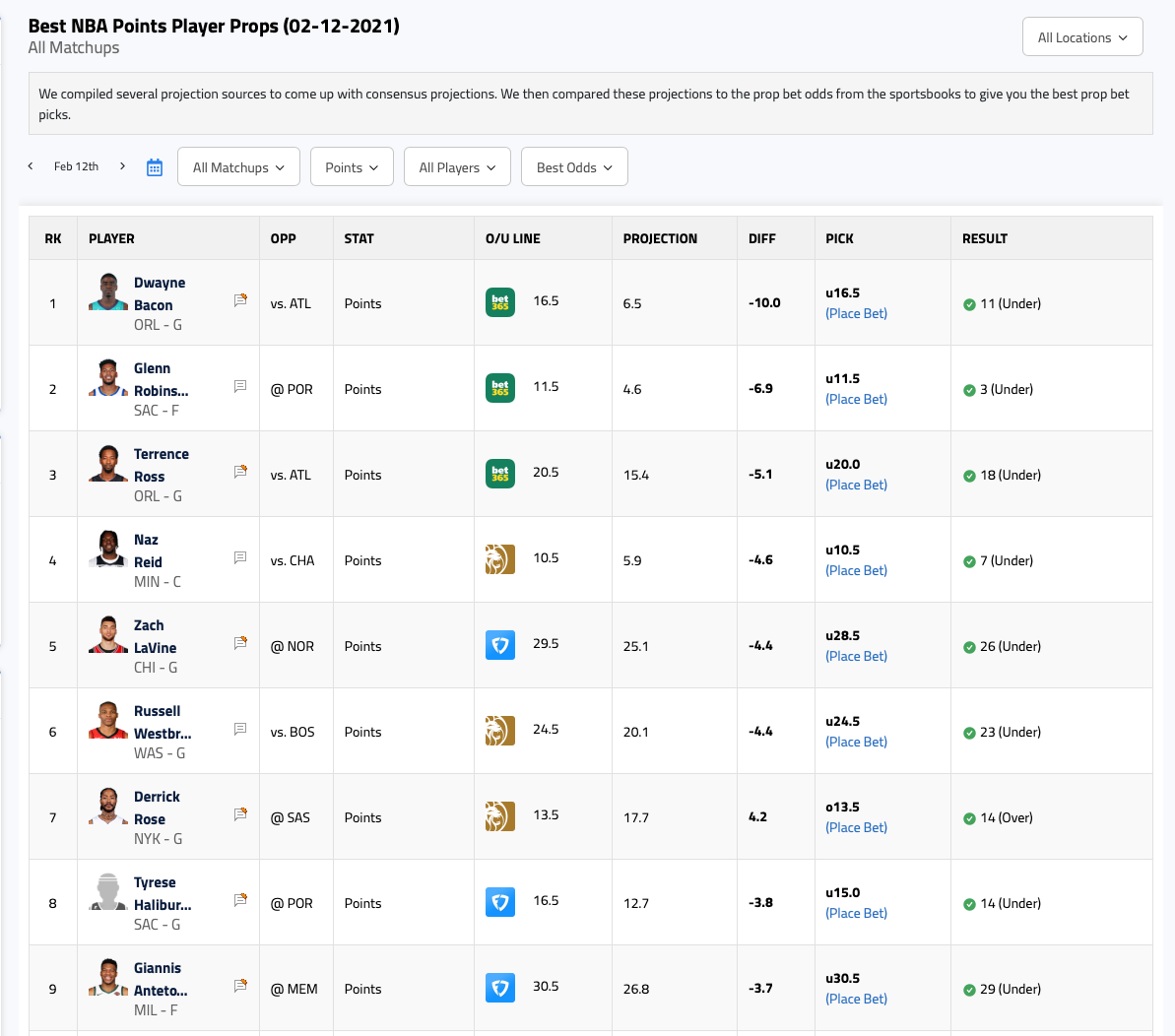 With the NBA season in full swing, we're constantly updating our basketball reports and advice to help you find where the best bet opportunities are so you can make more winning bets. Our newest enhancements to our NBA reports helps you find the best player and game prop bets, and helps uncover which sportsbooks are providing the best odds for each bet. Whether you are new or experienced to prop betting, this is a great way to see where all the prop over/under lines are in one place, and it will give you an idea on where to start with your prop bets to help you make smarter decisions.