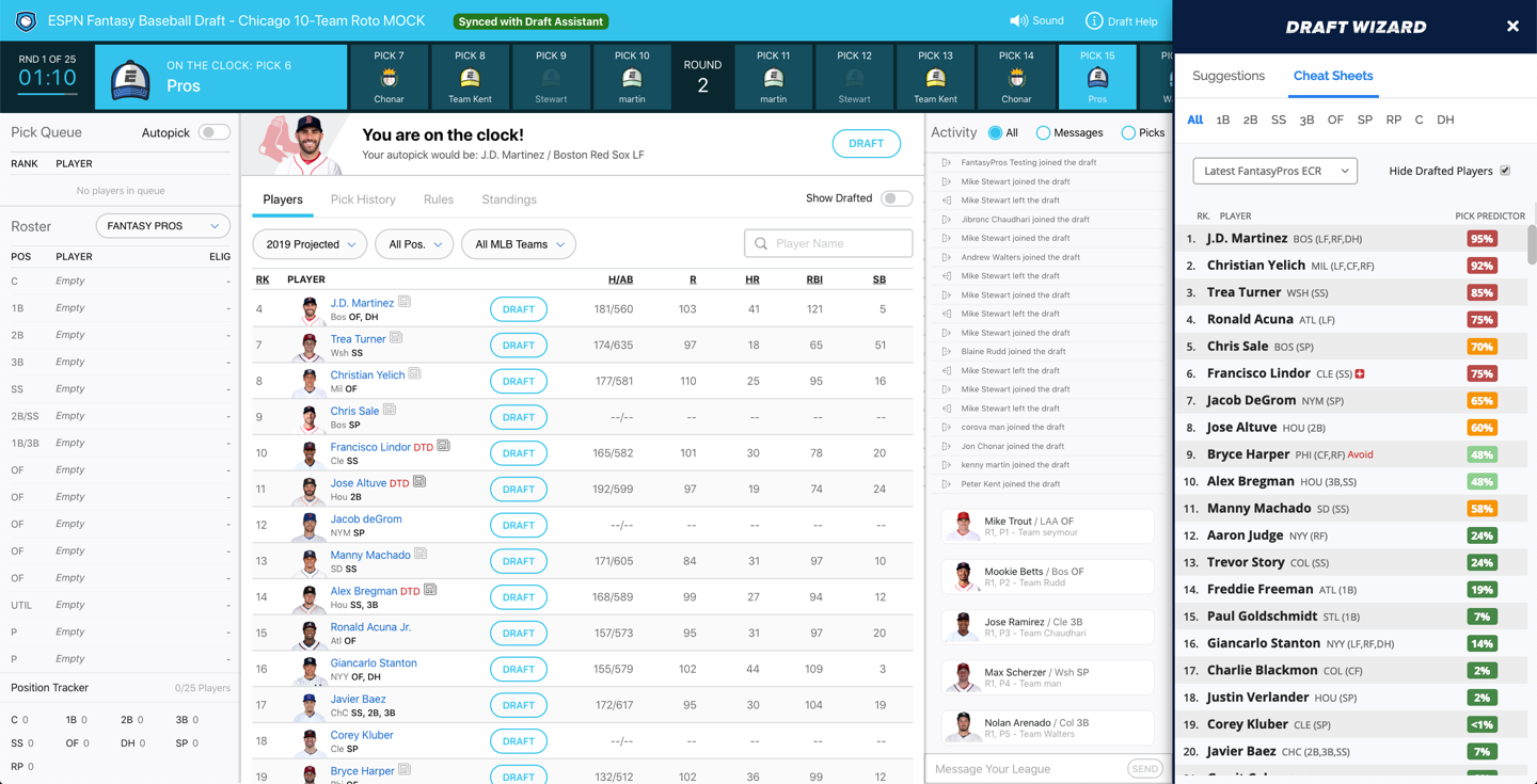 Starting last year with 2018 fantasy football and with a huge improvement for 2019 fantasy baseball, you can get draft advice directly in your ESPN live draft (or mock draft) with the FantasyPros Chrome extension, via the Draft Wizard Draft Assistant.