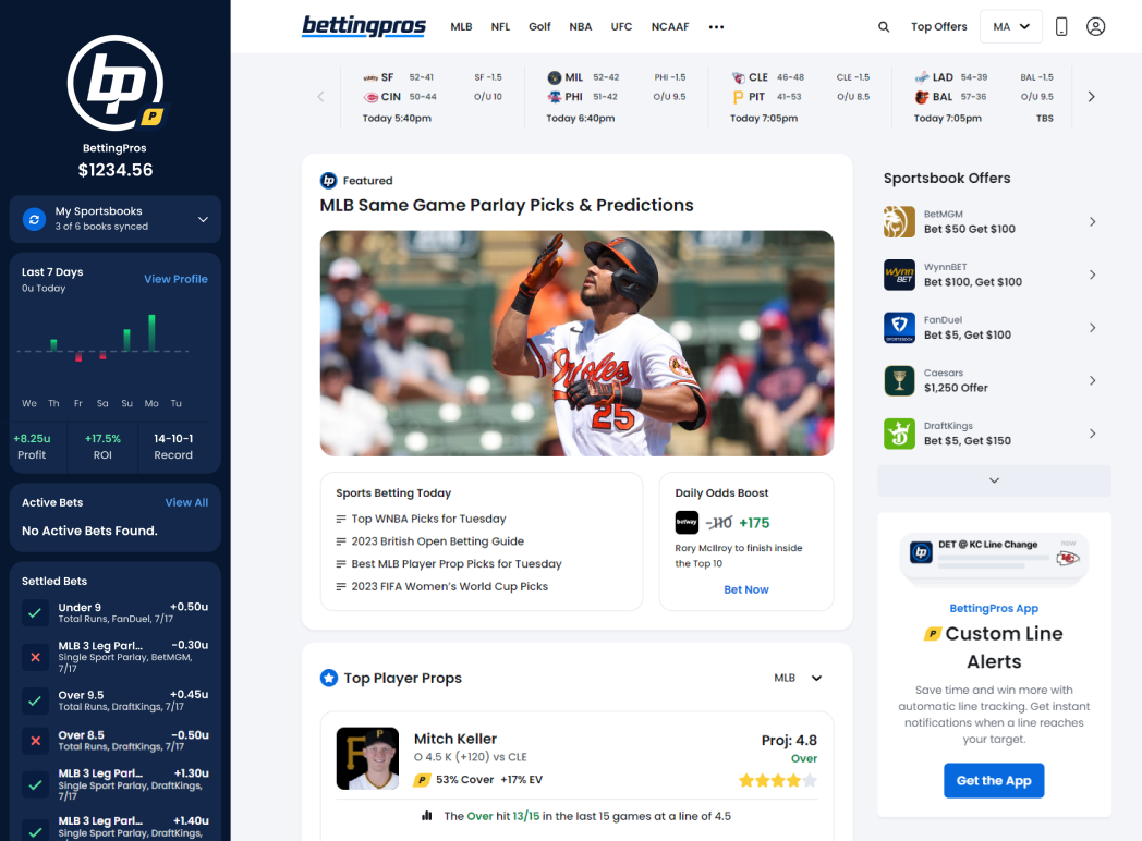 Sync your sportsbooks and start your bets directly from BettingPros from most major sportsbooks and platforms easily.