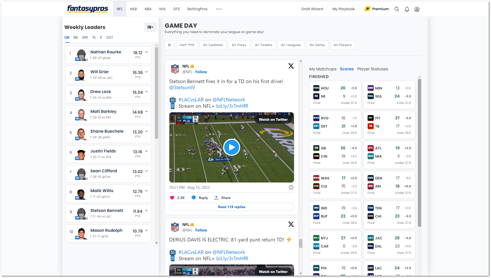 Game Day saw a number of QoL updates, including added support for your personal fantasy matchups, updated scores and stats, and live tweet integration.