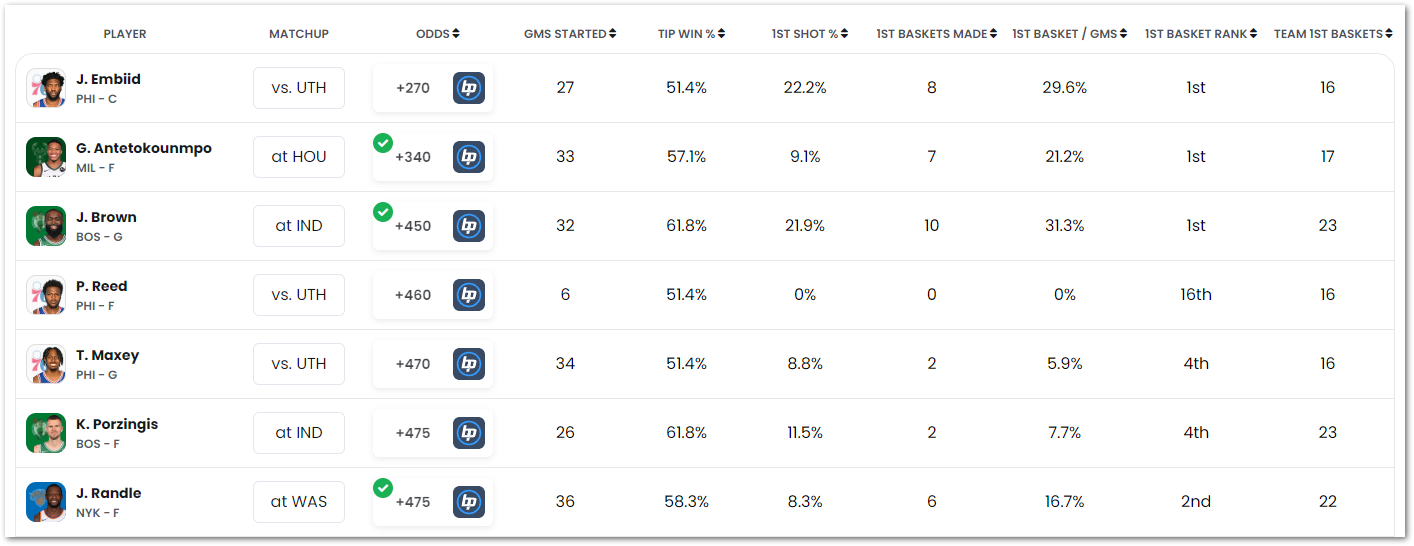 NBA First Basket Prop Bet Cheat Sheet