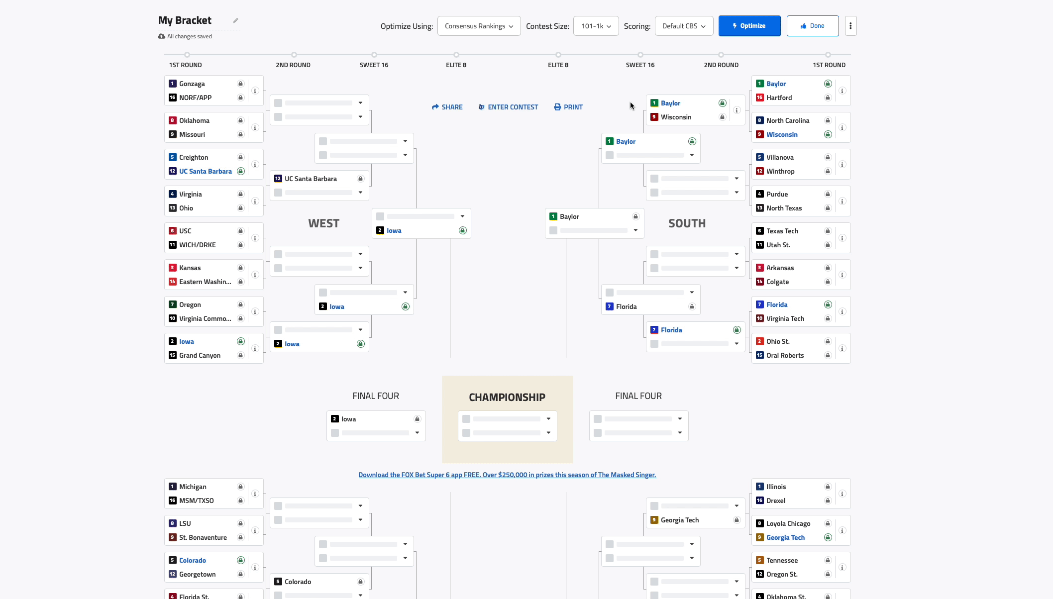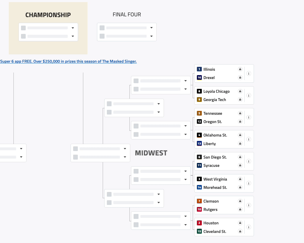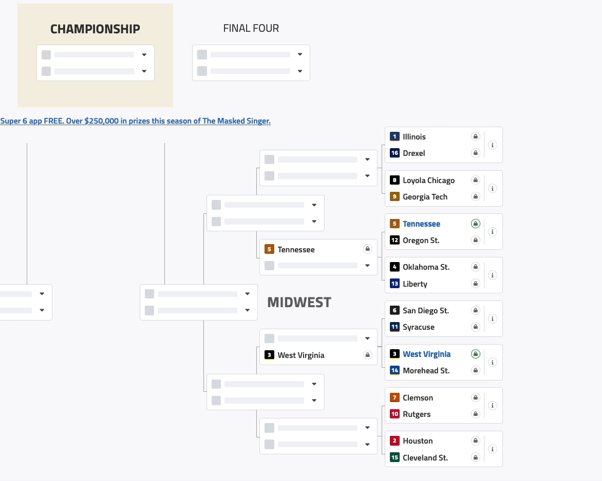 Do you want to make your personal game picks faster? If you have a handful of favorite teams that you think will go far in the tournament, you can enter your teams into the later rounds of the bracket -- we’ll backfill the bracket and lock those picks in for you.