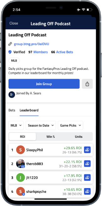 With Betting Groups, you can join groups with other like-minded sports bettors.