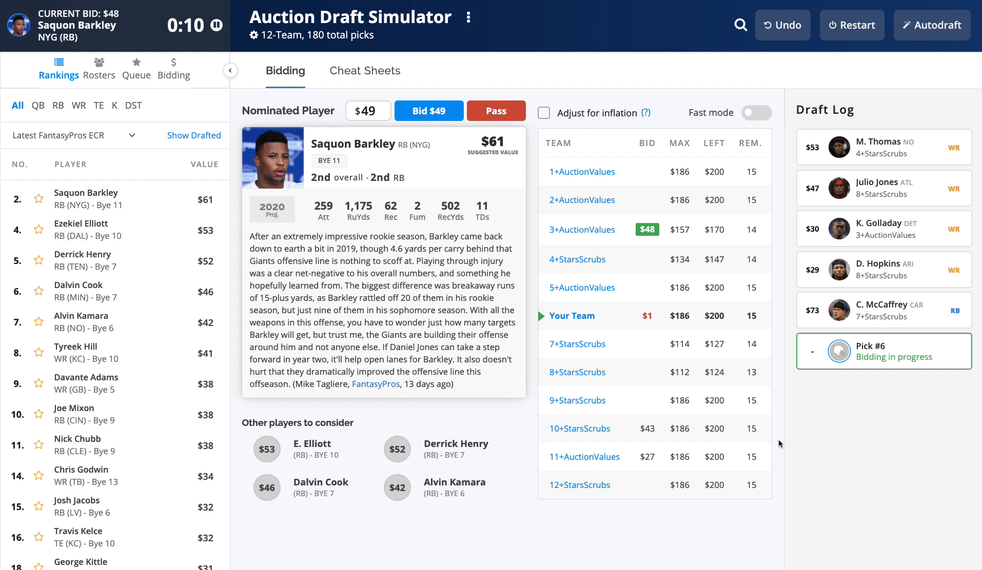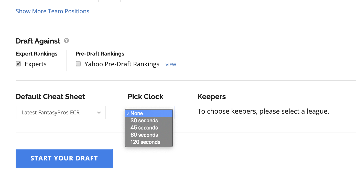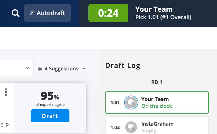 To better simulate what a real draft would be like, we've added a pick clock to the Draft Simulator. Pick between 30 and 120 seconds.
