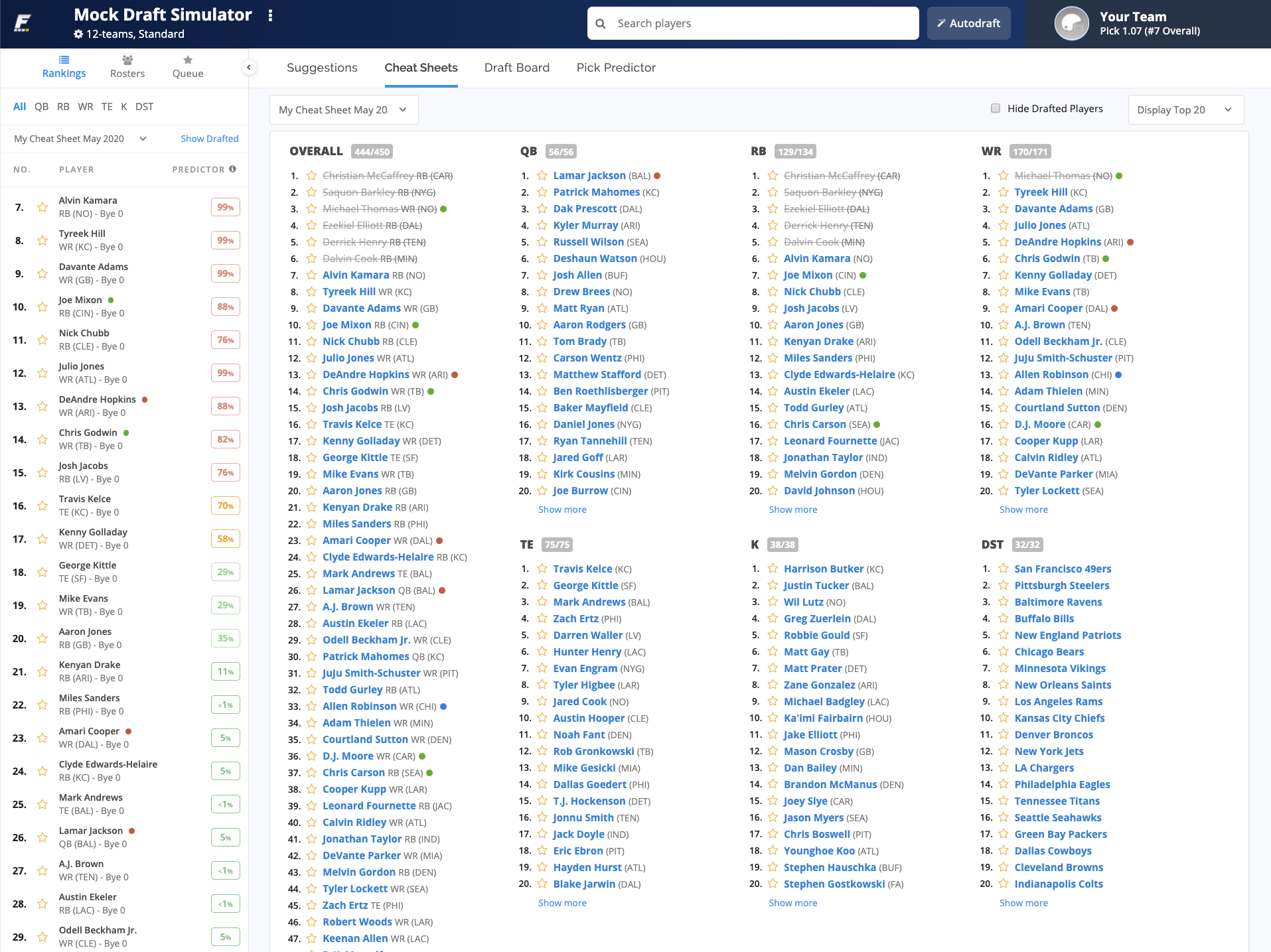 [5/13/2020] Draft Wizard Updates to Simulator and Assistant for NFL and MLB