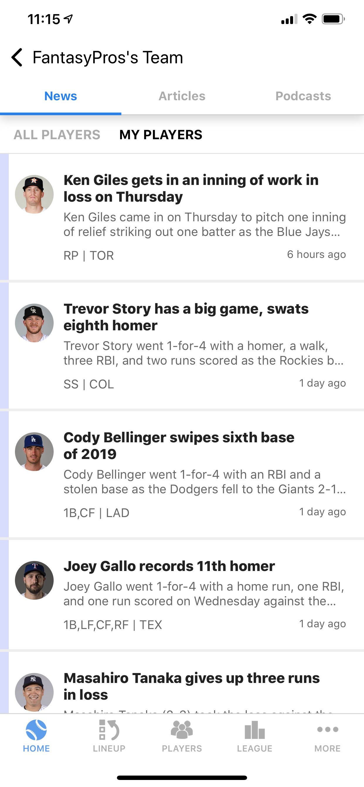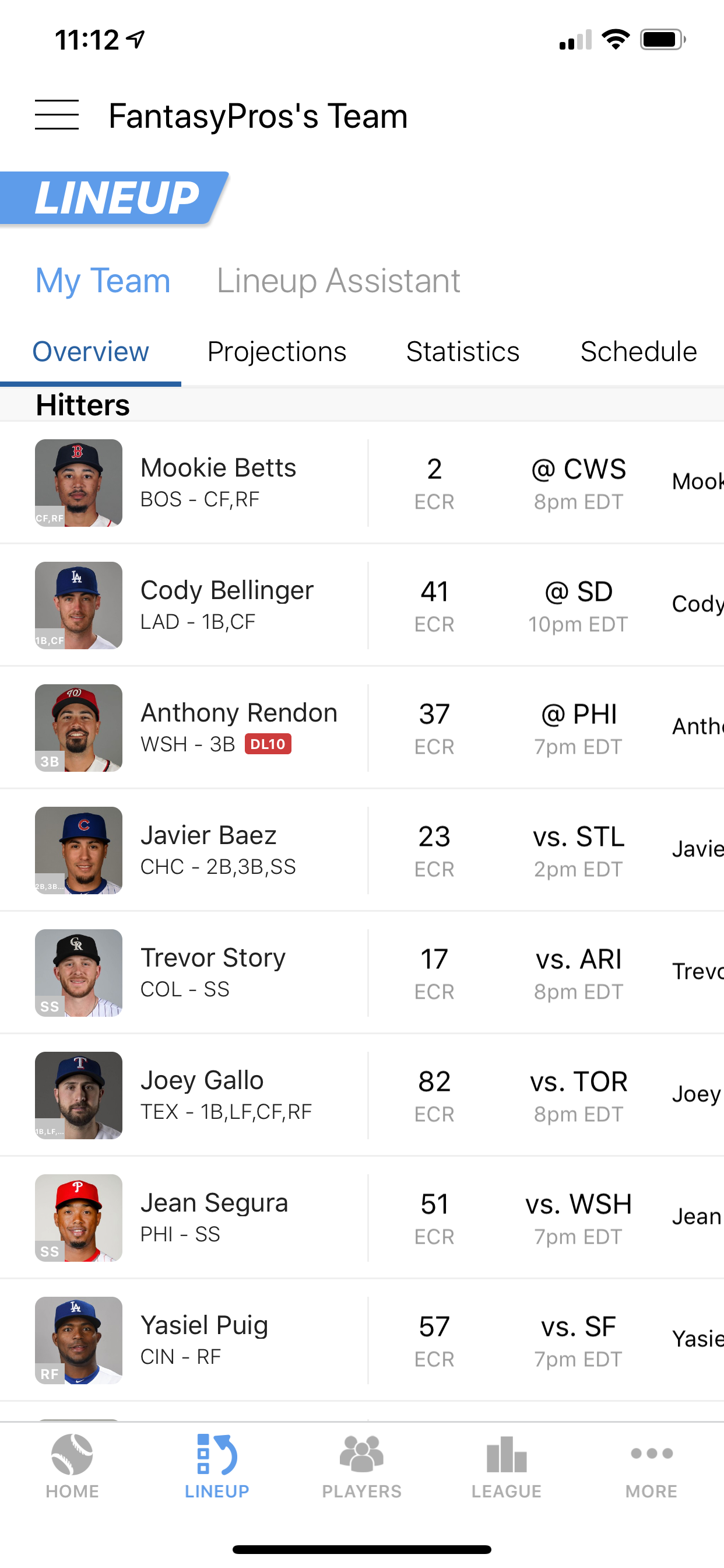 The My Team screen has been updated to make it easier to check out your player matchups, stats, projections, and schedule.