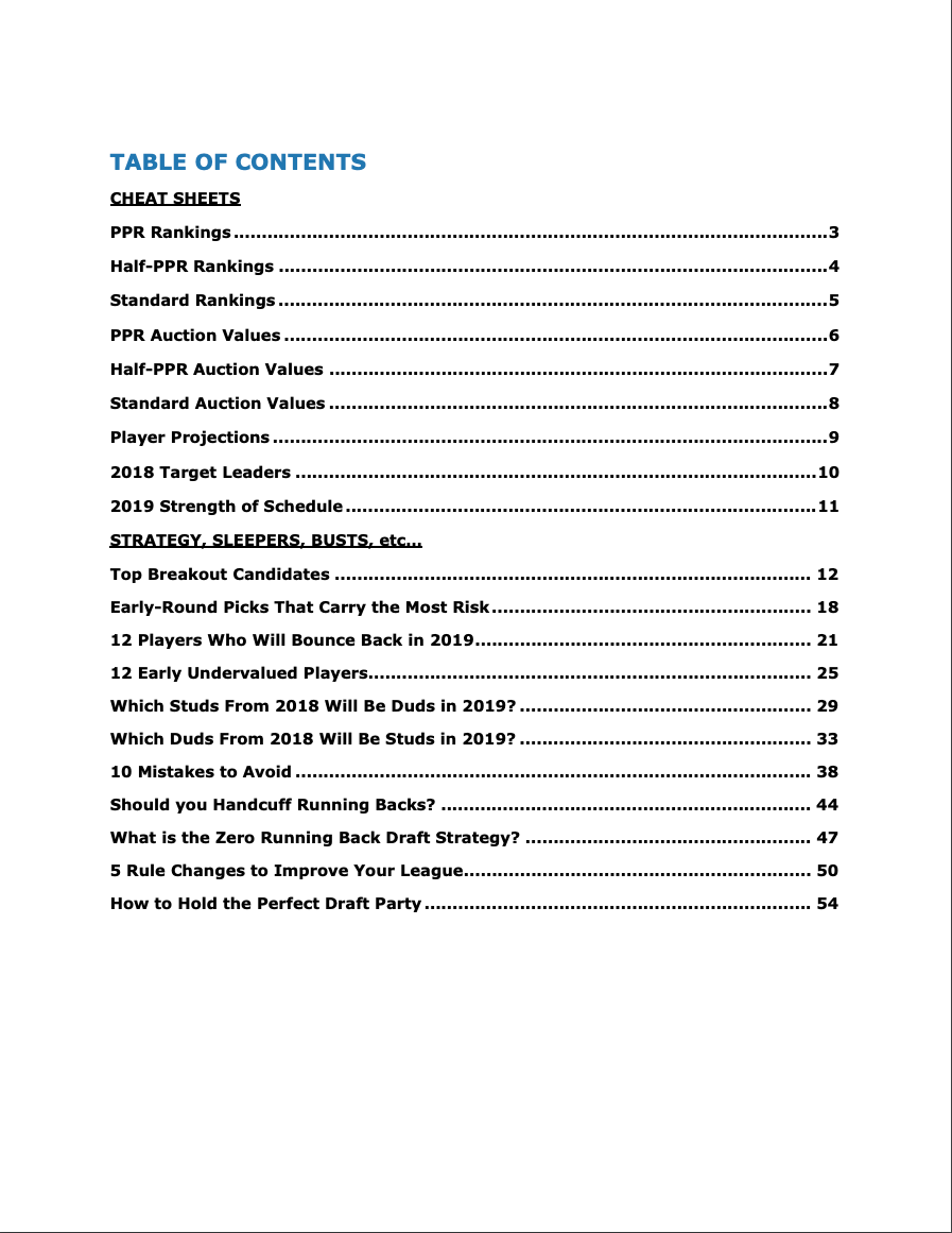 With all that said, our 2019 Fantasy Football Draft Kit has just arrived. The printable Draft Kit includes: