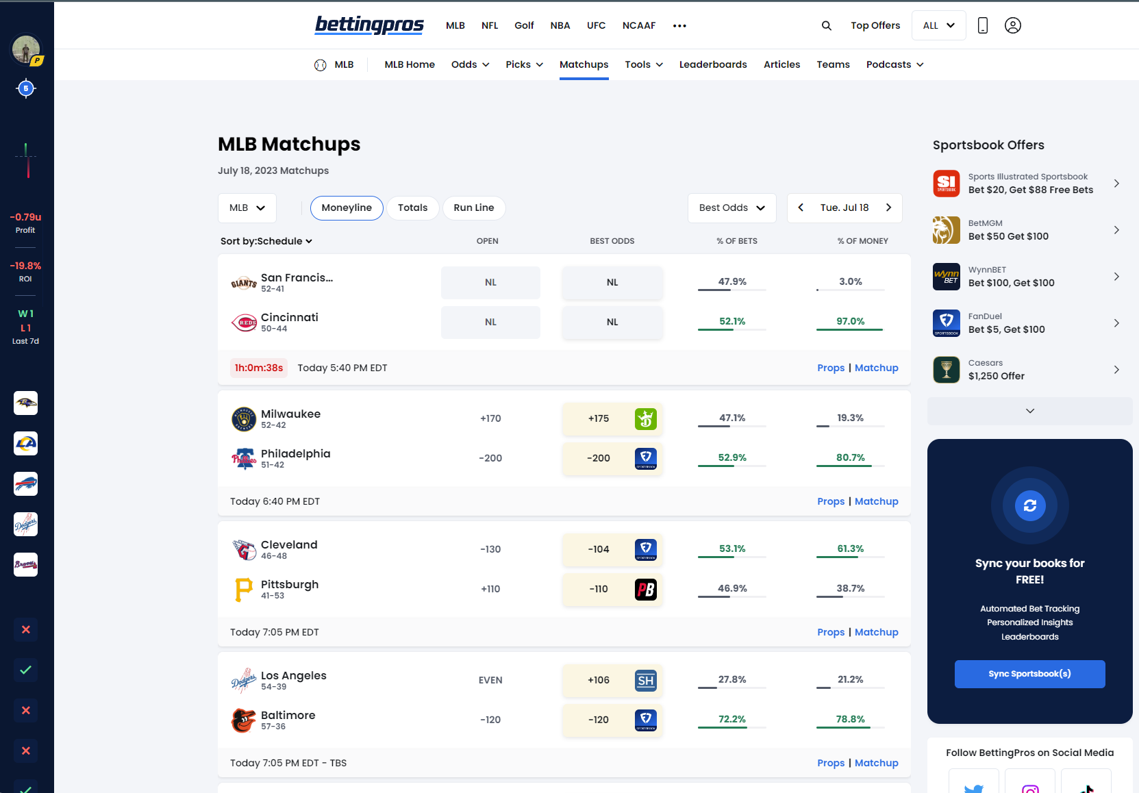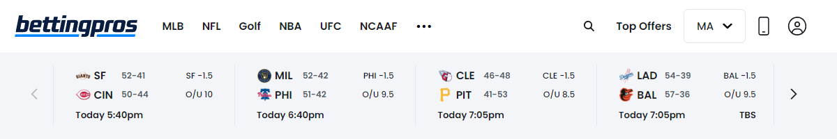 Find updated and more relevant betting information for each game, including a quick glance at the top odds and props, lineup and starters, key injuries, and more.