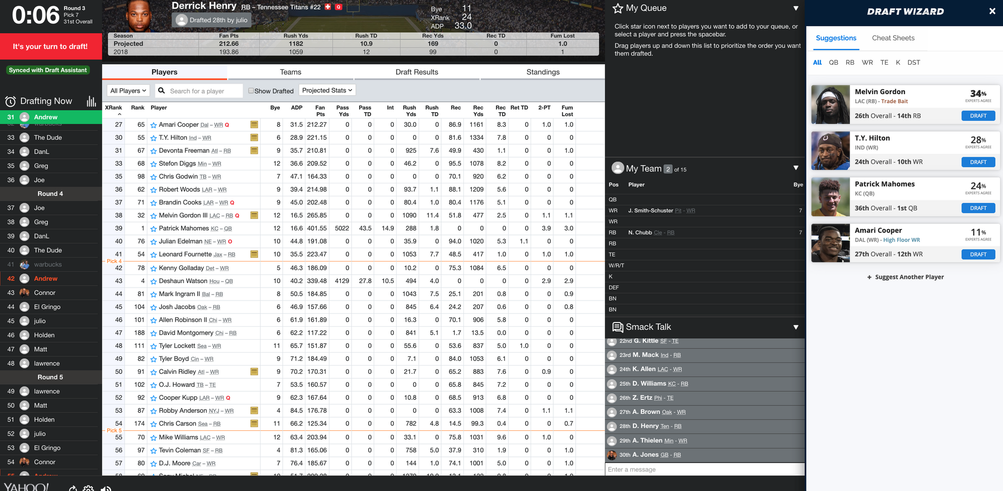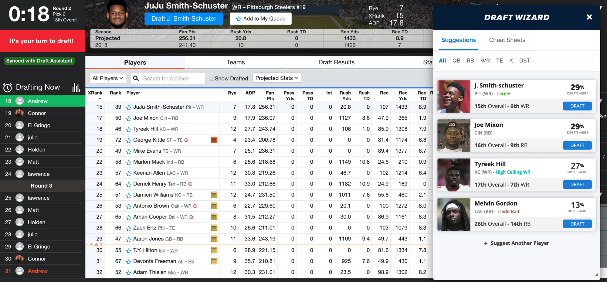 - You can receive the same expert-driven player suggestions in your draft room instead of having to flip back and forth to and from the Draft Assistant.