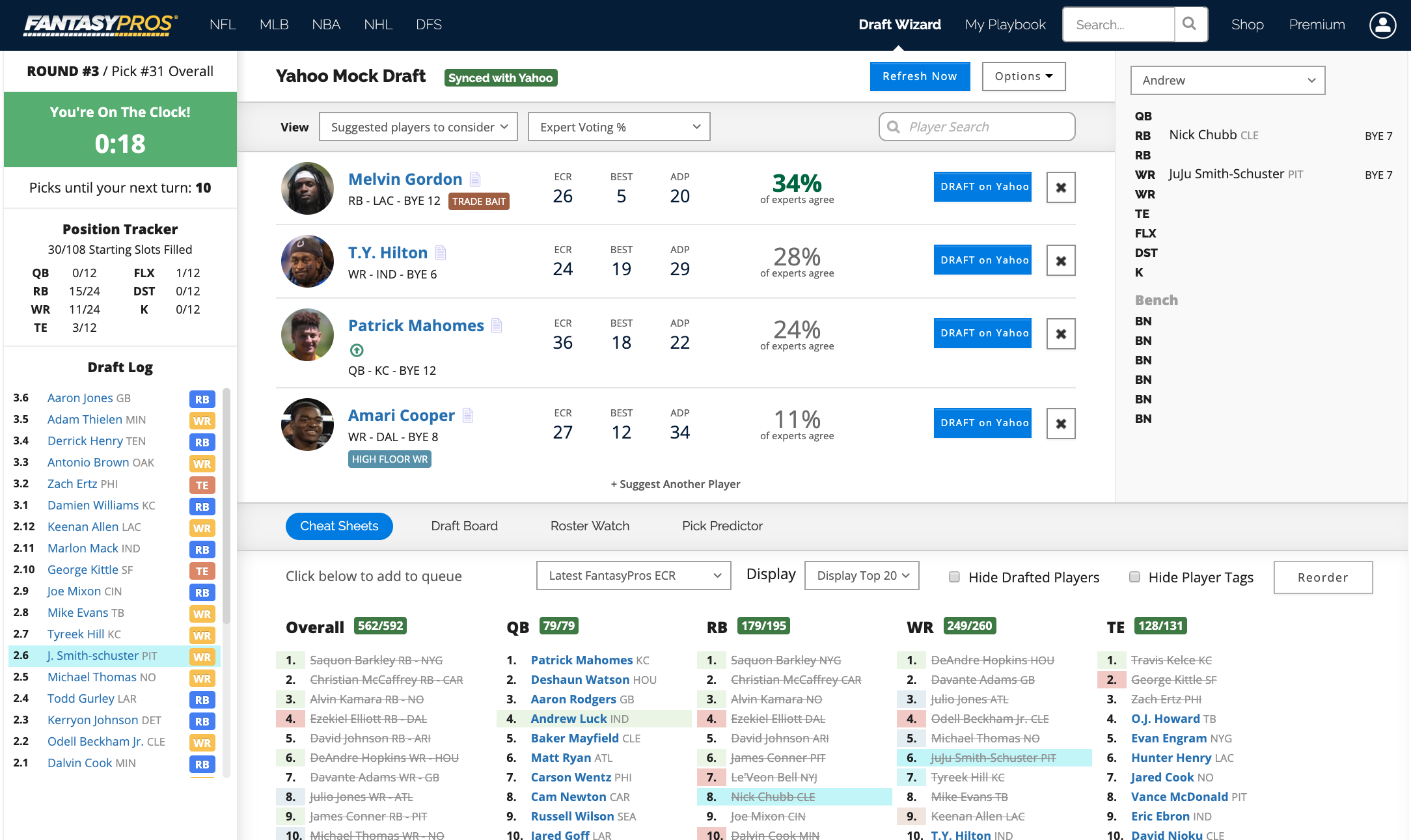 We updated our Chrome Extension to include in-draft support for Yahoo live/mock drafts and NFL.com live drafts. This means that, in conjunction with our Draft Assistant with Sync: