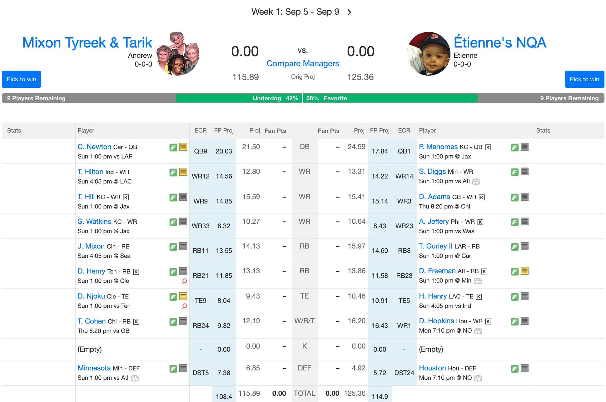 On Yahoo, you get ECR and our projections added to your matchup view: