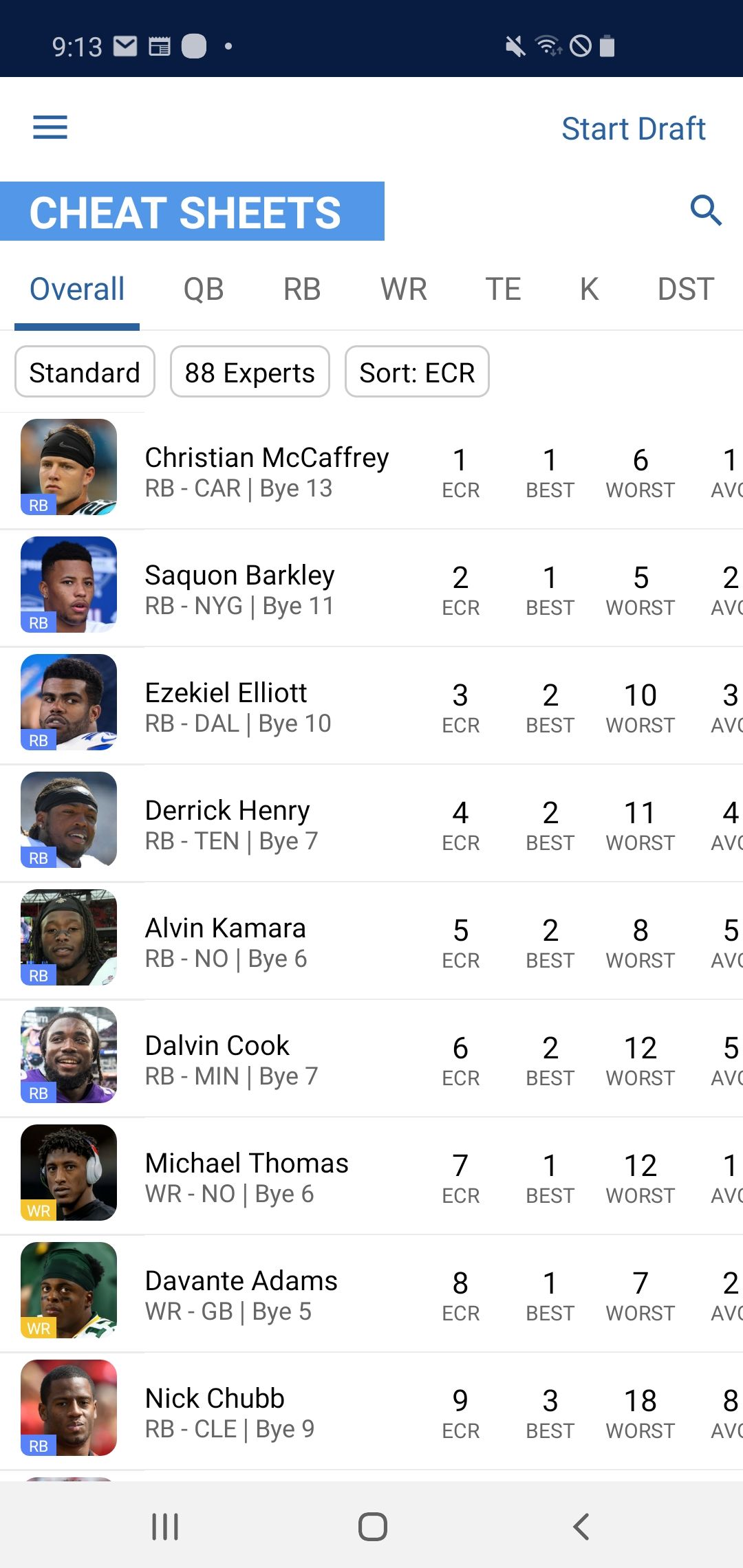 The Cheat Sheet app allows you to view our Expert Consensus Rankings and check out player stats and news.