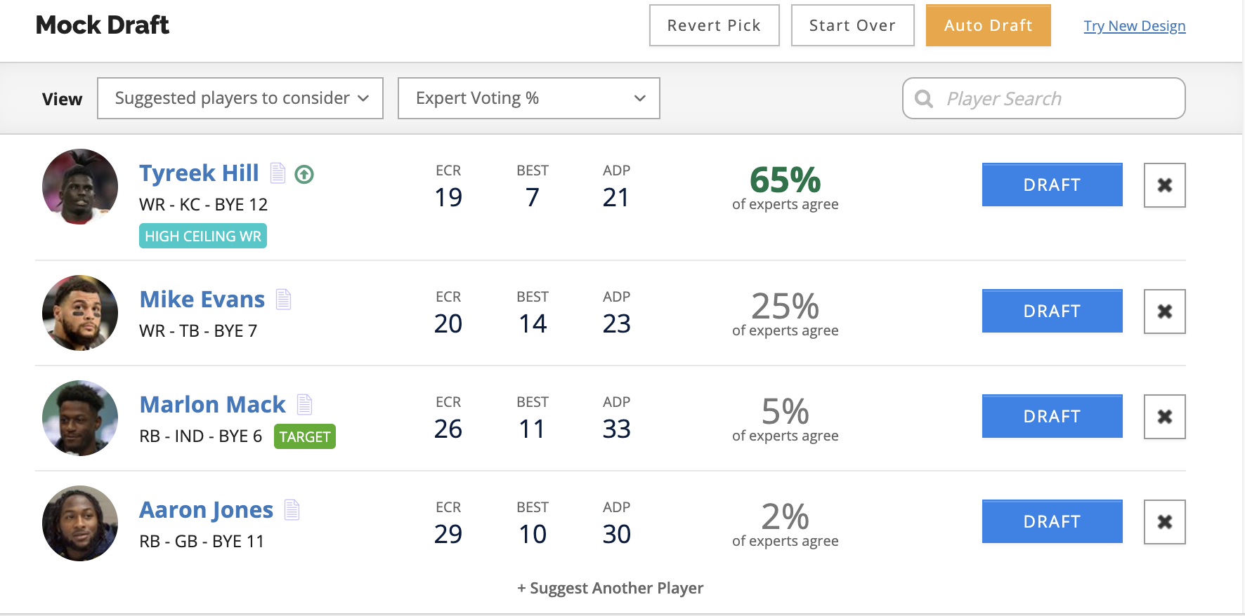 This feature is now available in the Draft Wizard Mock Draft Simulator and Draft Assistant.
