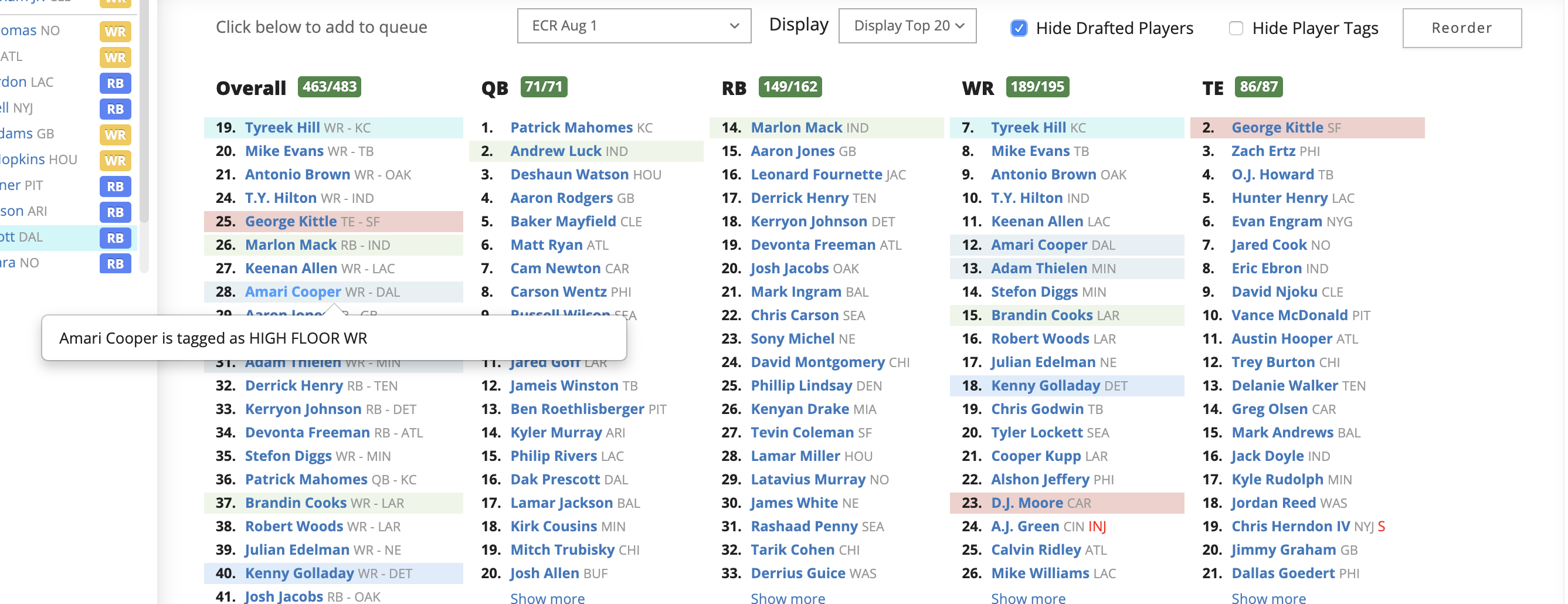 [8/2/2019] New Custom Cheat Sheet Tags, ECR Risers/Fallers, Superflex Views in Draft Wizard