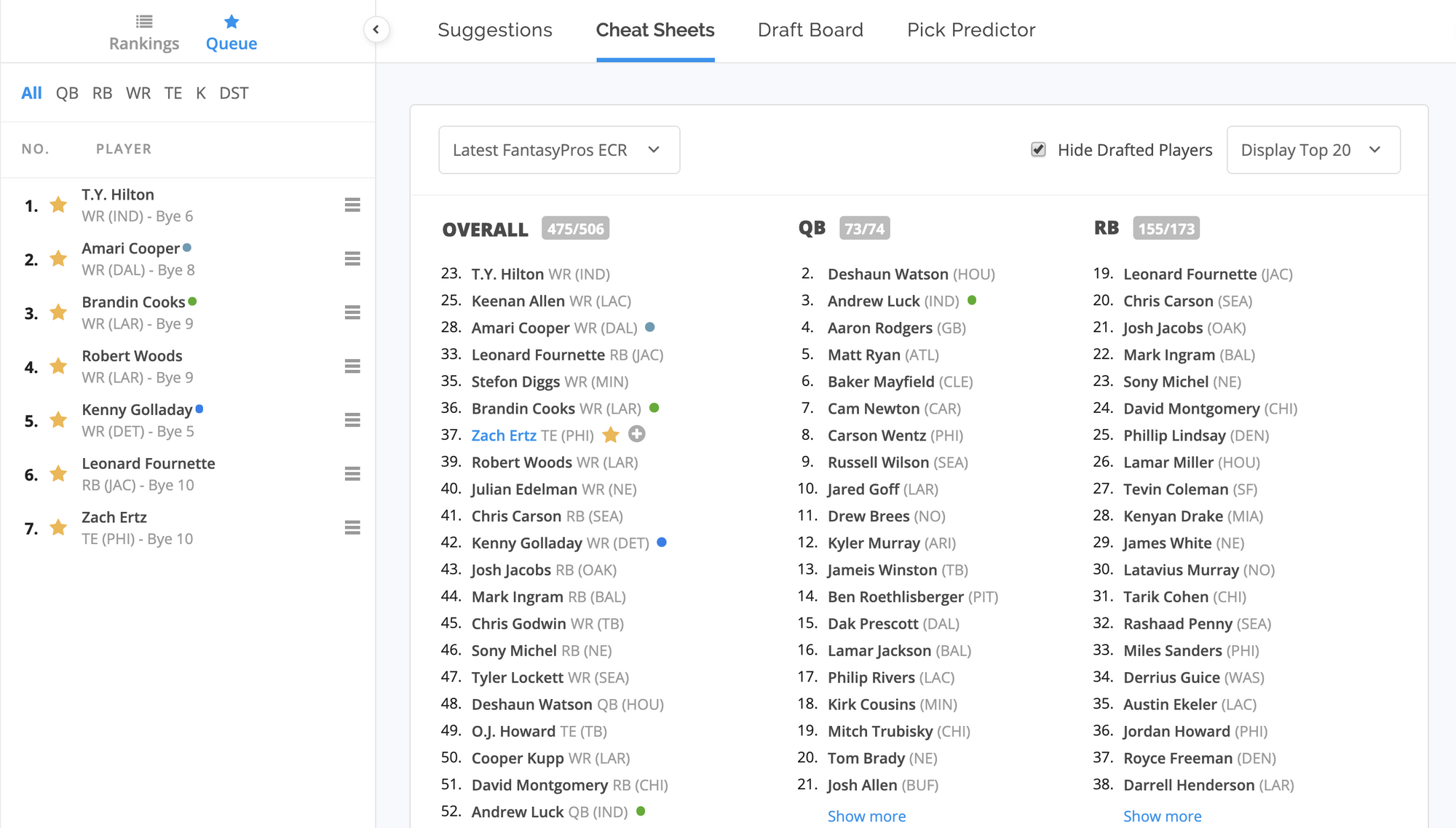 Player Rankings, Queue, and Cheat Sheets: Wow, Much Useful