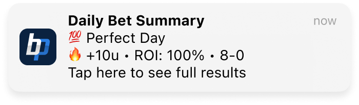 Within the BettingPros app, get notified daily, weekly, or monthly of your recent betting performance.