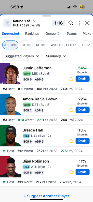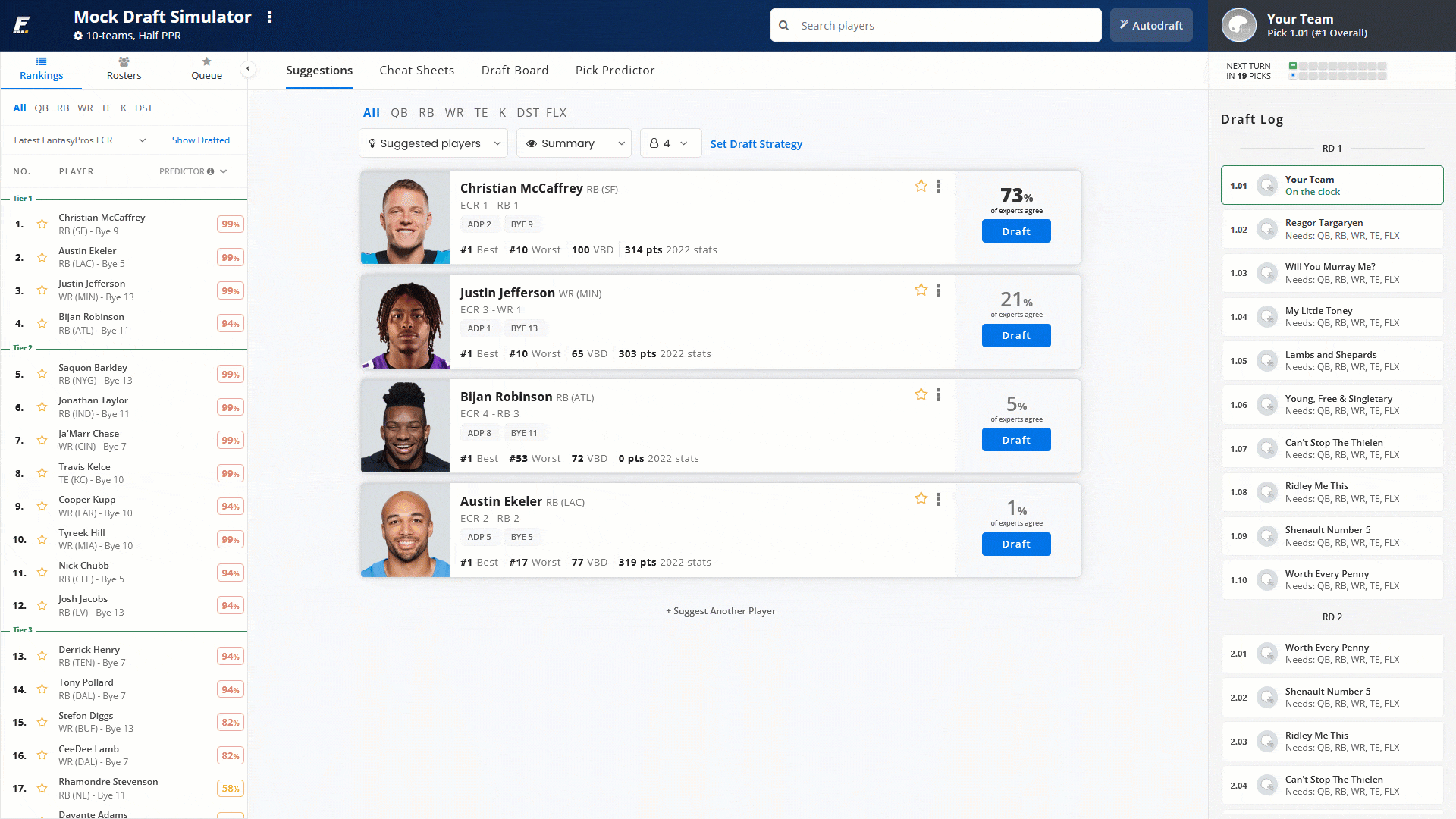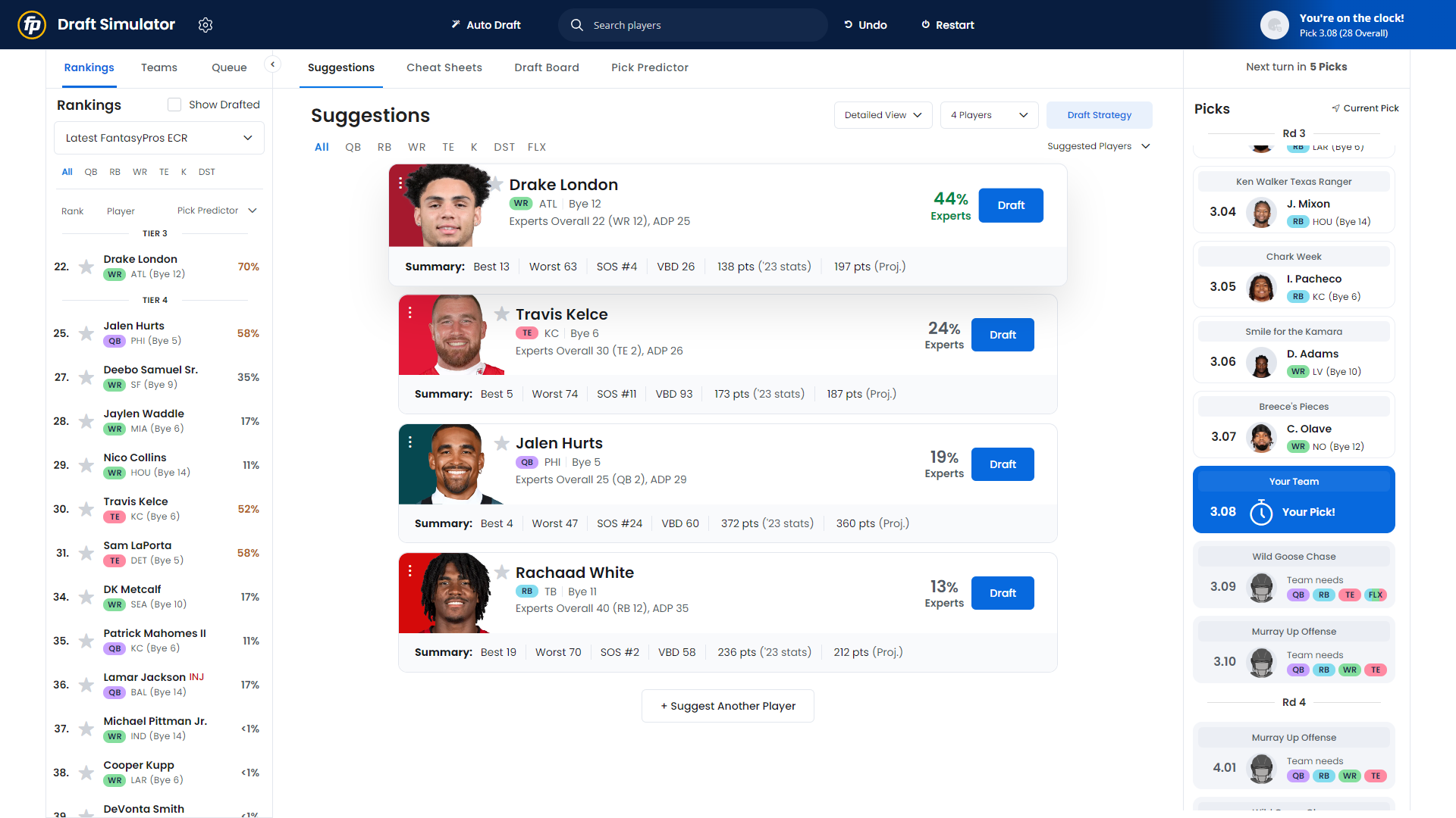 With that in mind, we are excited for these latest updates to our Draft Wizard Draft Room, used while mock drafting in the Mock Draft Simulator and Mock Draft Lobby, and while live drafting with Draft Assistant.