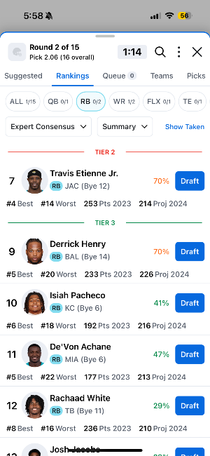 You’ll now find positional tiers integrated into the Rankings tab, making it easier to gauge player value across individual positions and to strategize your picks.