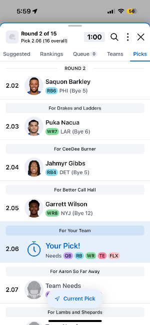 The Picks tab has added team needs to upcoming picks, giving you better insights into what positions you should prioritize.