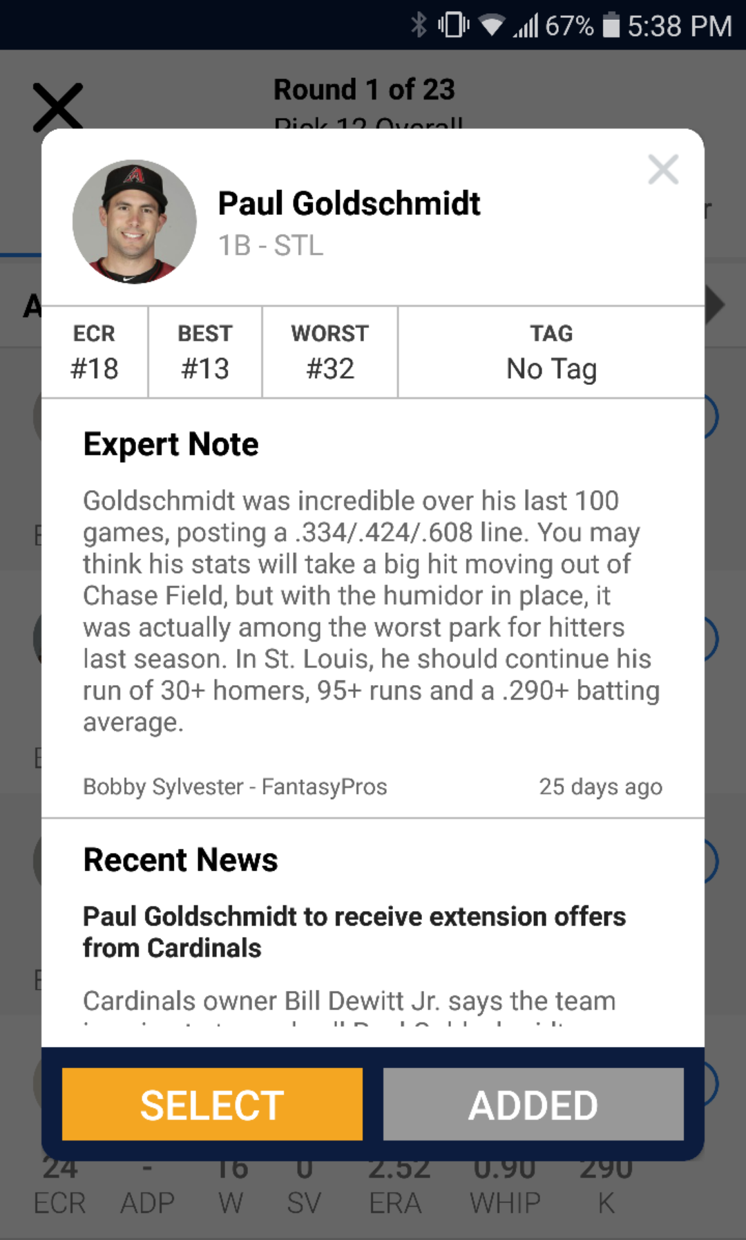 - Brand new player cards: a better way to see a player's rankings, news, notes, stats, and projections.