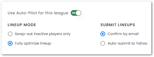 Use Auto-Pilot to get emails with suggested lineup changes, or even let us auto-swap players for you!