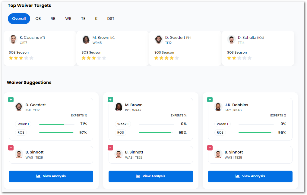 With My Playbook's Waiver Tools, you can find the top available free agents in your league and see their potential impact on your team.