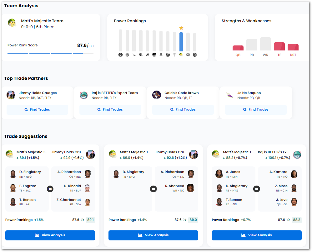 With a detailed side-by-side look, you can see the impact on both teams and easily find your next trade.