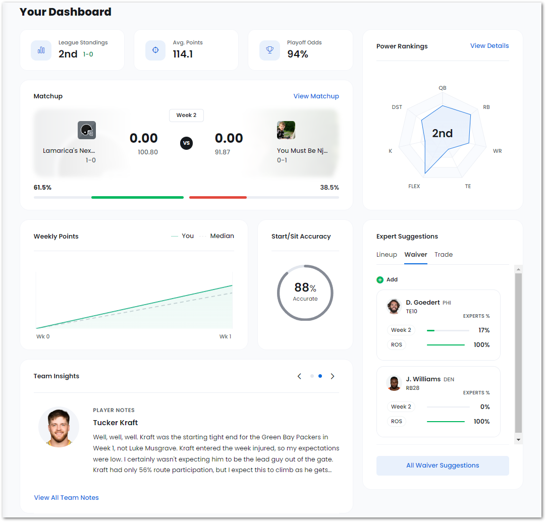 With weekly and ROS projections and stats for your every fantasy relevant player in one spot, you'll always have the information you need.