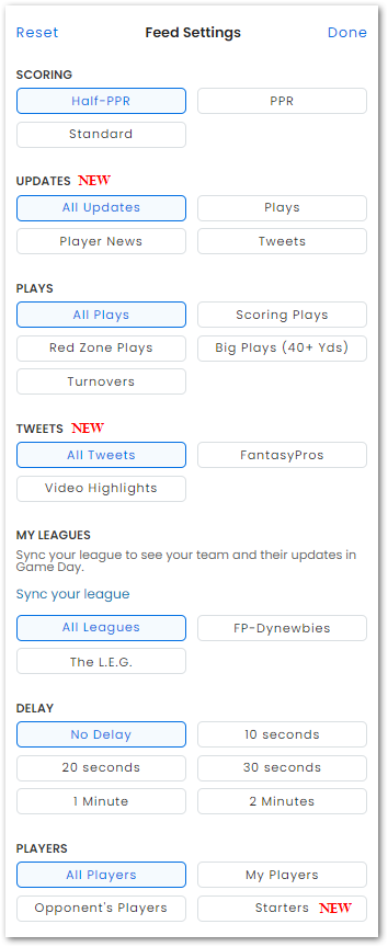 With the recent addition of Tweets & Player News, you can toggle what types of updates show in your feed.