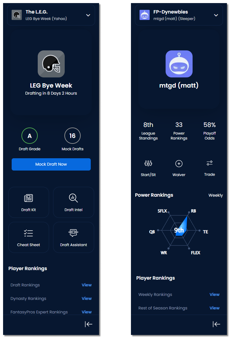 Your synced leagues will now remain a constant throughout the FantasyPros.com experience, and all of the main league-specific resources will just be a click away.