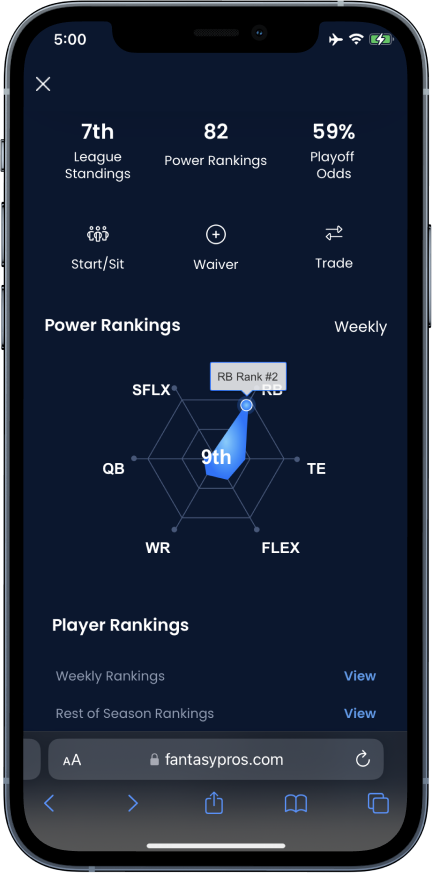 In-season, get your power rankings and playoff odds, current matchup projections, in-season player rankings, and the top in-season tools.